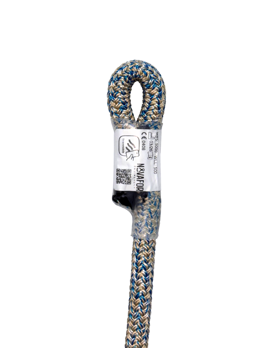 The epiCORD 9.3 mm sling combines a lightweight but heat-sensitive core with a tight polyester/Technora® cover, providing protection, flexibility, and excellent handling. The core, braided with a balanced mix of Technora® and Dyneema®, allows knots to be easily released, offering precise control and versatility during rigging operations.