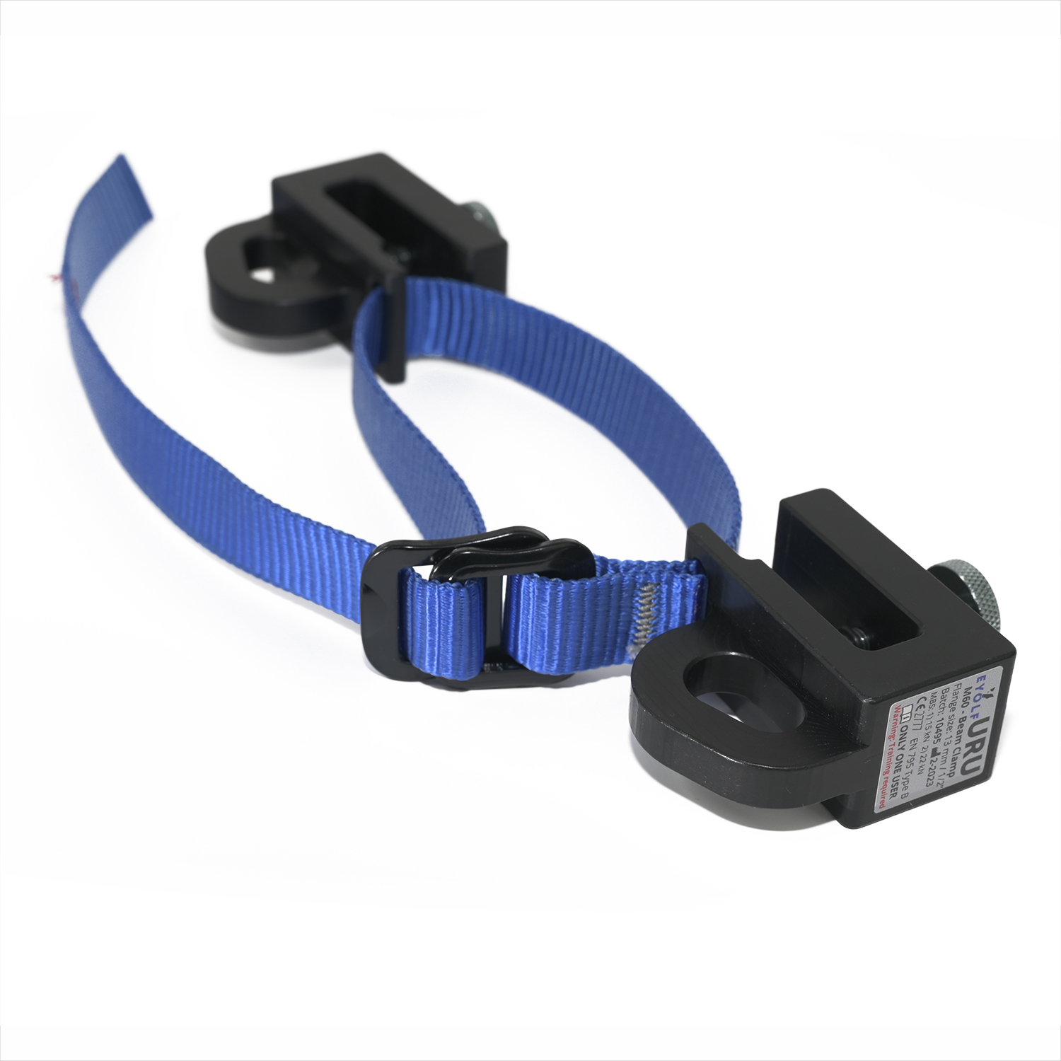 The Uru beam clamp can also be used vertically; we suggest using a sling to tie into both anchor points if you are going to use the beam clamp for vertical lifeline systems. We do not recommend the beam clamp to be used for vertical aid climbing as this has not been tested.
