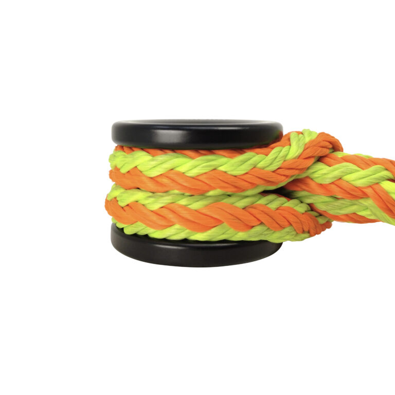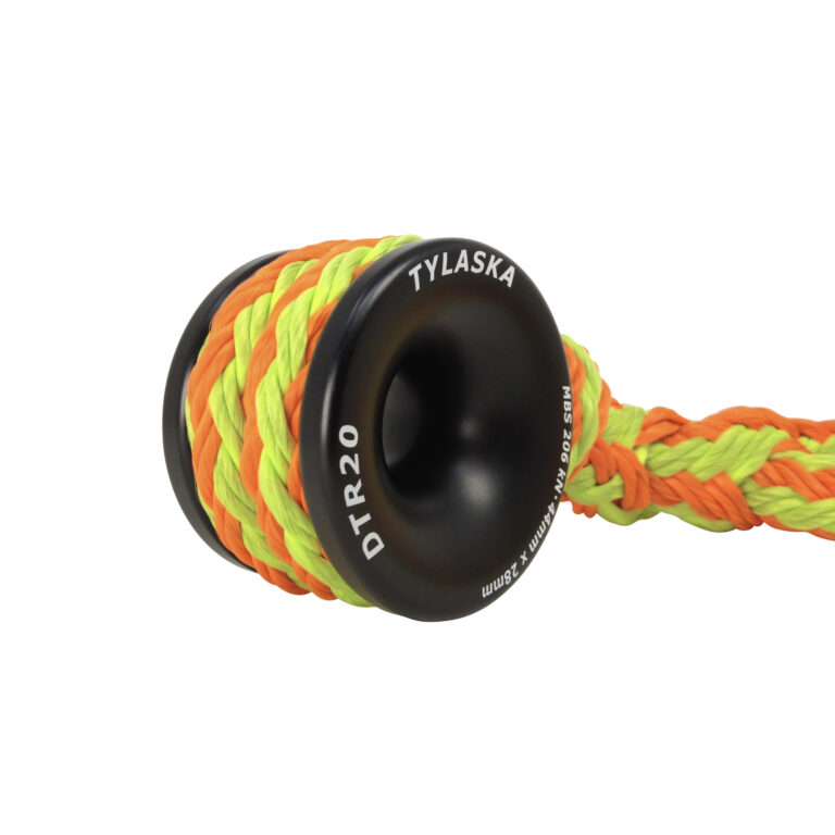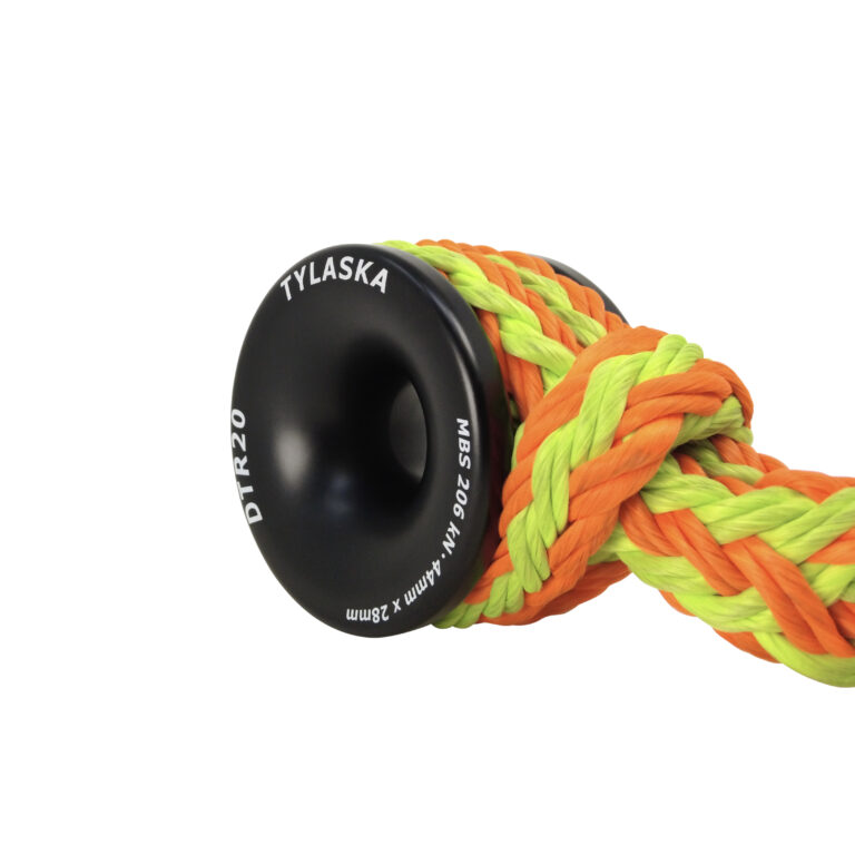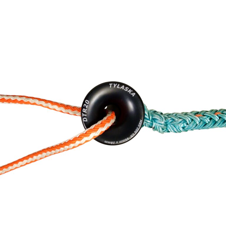 The Tylaska DTR20 Rigging Ring is a heavy-duty, low-friction rigging connector ideal for arborist rigging, custom slings, and high-load rope systems. It’s machined from 6061 aluminum with a Type III hard-coat anodized finish for durability and excellent frictional heat dissipation. The ring features a 28 mm hole diameter, 44 mm double groove width and a 206 kN minimum breaking strength, and its generous bend radius reduces rope wear and stress. The double-width outer groove allows easy sling attachment with a cow hitch or larks-head without splicing, making it versatile and quick to rig in the field.