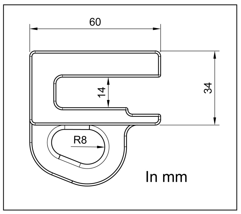 Ce modèle particulier possède une ouverture de bride de 14 mm, permettant d'y insérer aisément une bride de poutre en I jusqu'à 13 mm (1/2 pouce). Nous proposons également une version allant jusqu'à 25 mm (1 pouce).