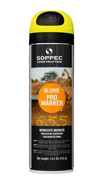 La bombe de peinture chantier non fluorescente PROMARKER s’utilise pour divers travaux de marquage/repérage : voiries, terrassement, canalisations, constructions, installations électriques. Cette peinture de marquage non fluorescente permet de masquer efficacement les marquages.
